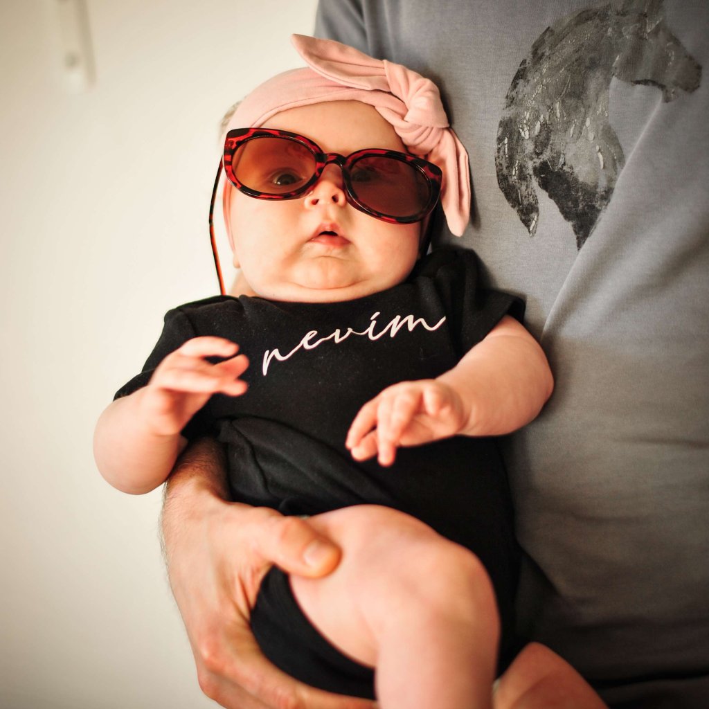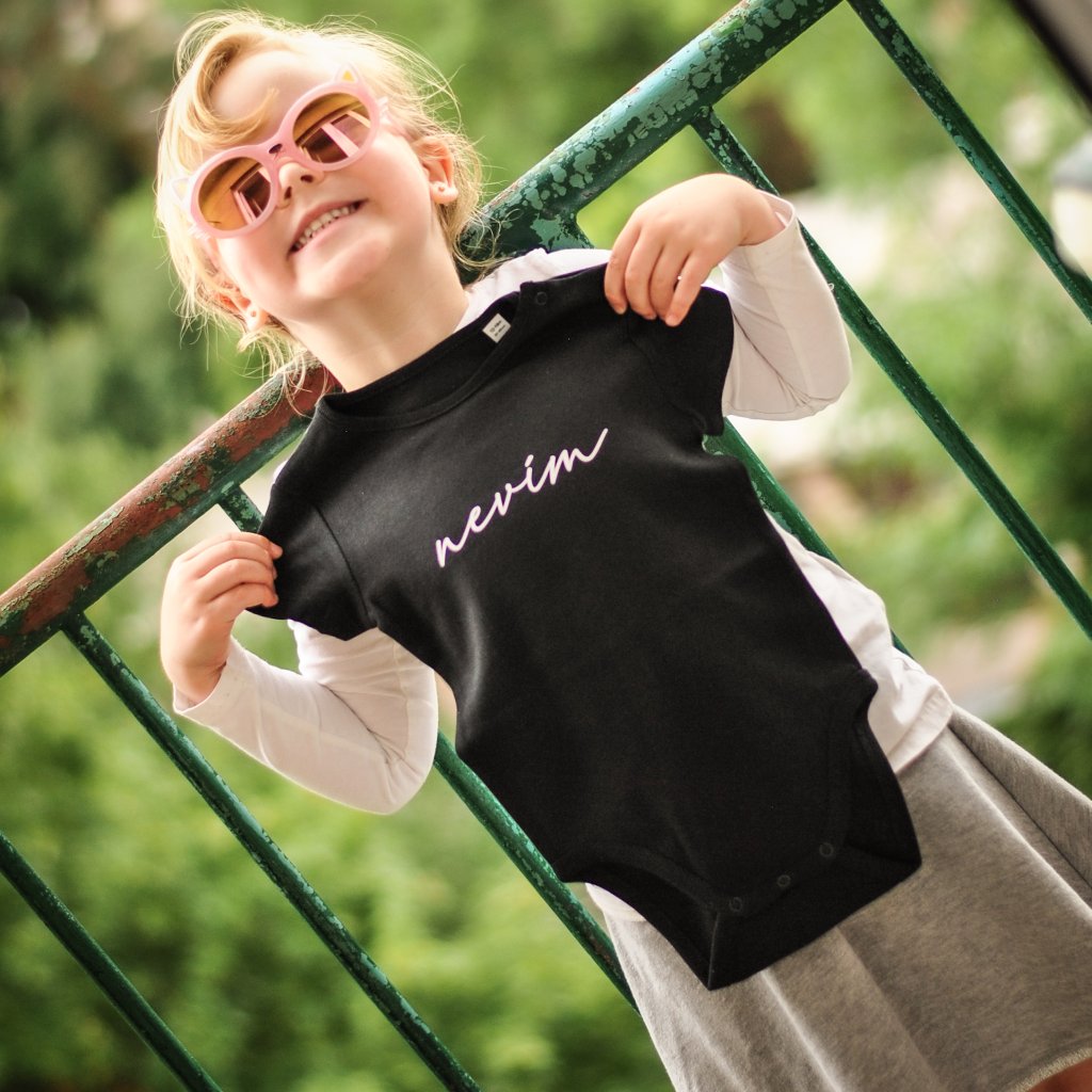 Heboučké dětské body z organické bavlny s krátkým rukávem, potištěné sítotiskem.