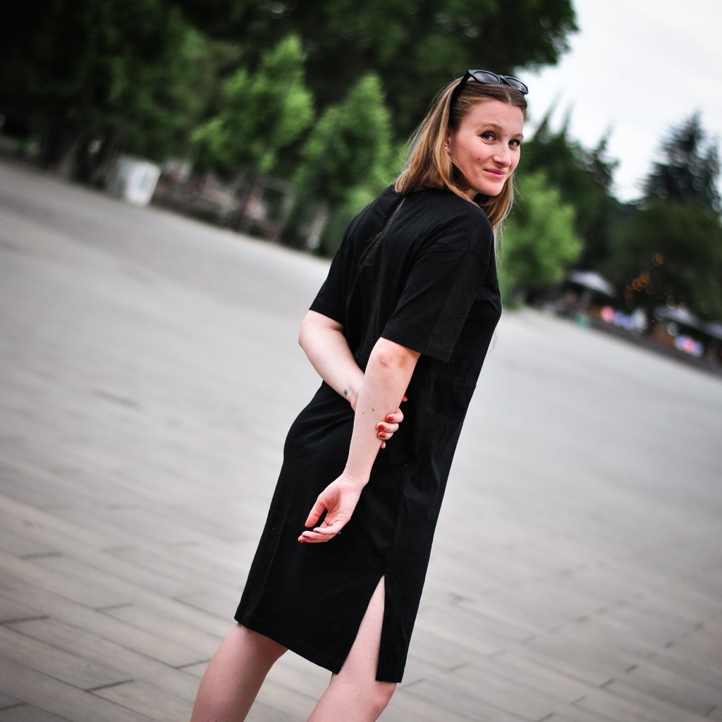 [ Maruška má na sobě velikost S a je vysoká 166 cm. ]
